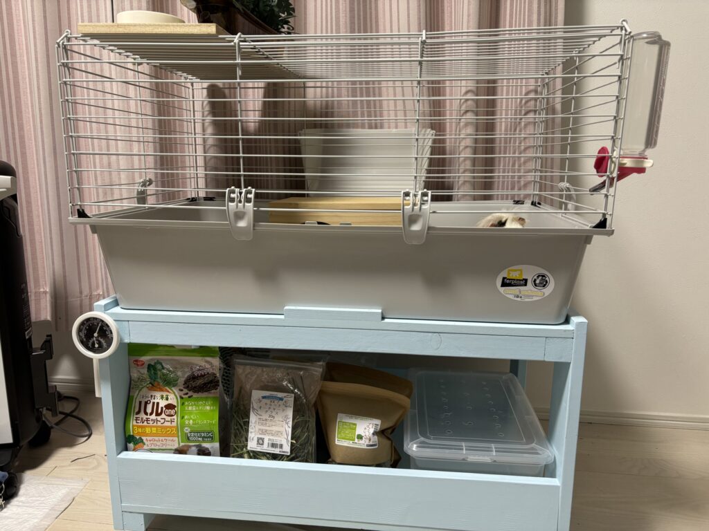 今回の記事の要約 ●モルモットケージ用のラックをDIYしてみた●大型のモルモットケージ(ギニア80)の置き場所をDIYラックで解決、キャスター付きで掃除もしやすい専用ラックを作りました。 この子は、我が家で飼育しているモルモットの男の子、ラテです。 ... -
