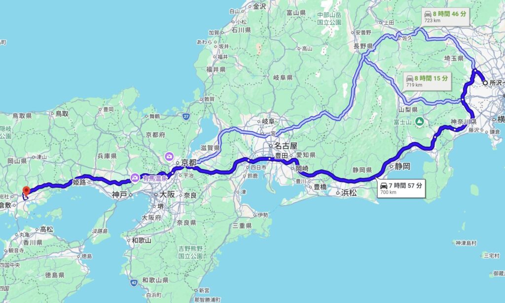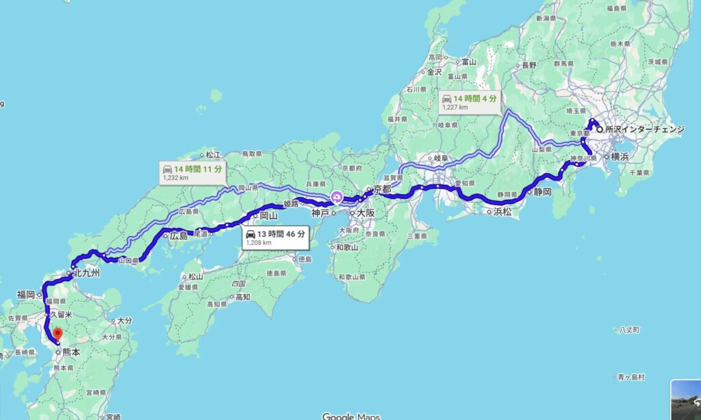 いよいよ実家のある熊本まで移動を開始します。道程は1,250km。
