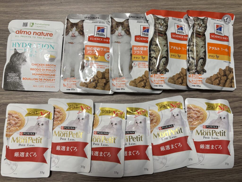 パウチ系のウェットフードが全部で20個くらい。