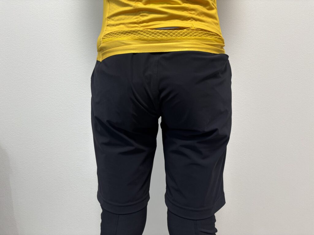 細身の作りにはなっていますが、タイト過ぎないのと生地にも伸縮性があるので動きの妨げになる感じはありません。ペダリングも違和感は無し。